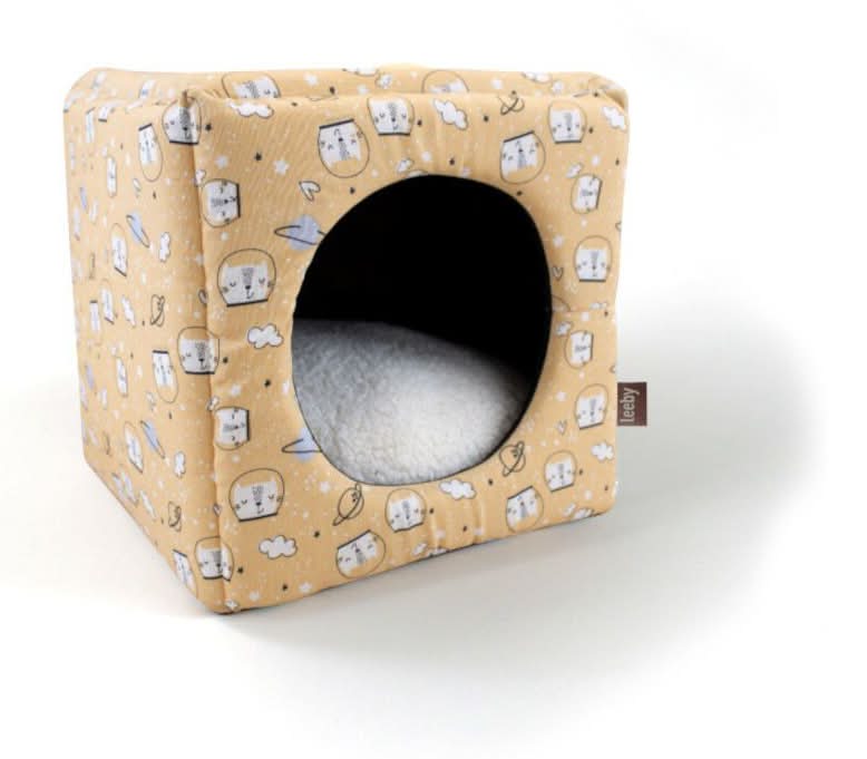 Cama cueva con estampado de cómic para gatos · Leeby - 33x33 cm - Amarillo