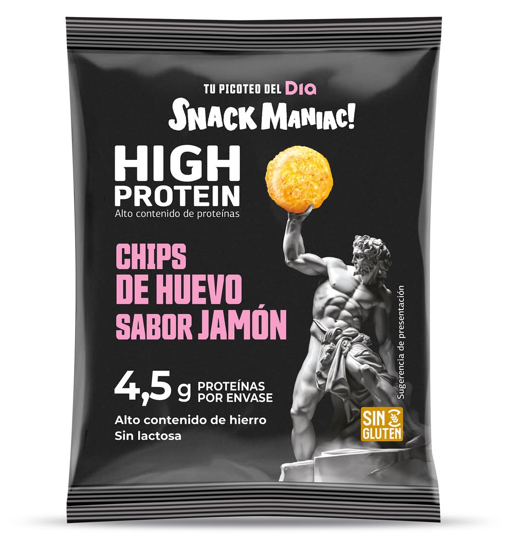 Chips de huevo con alto contenido de proteínas · Snack Maniac de Dia - Jamón (10 g)