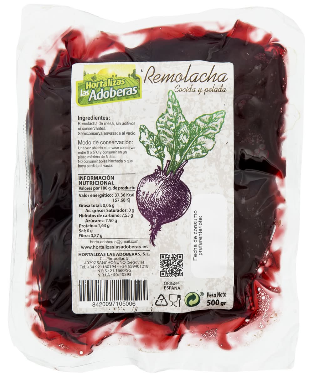 Remolacha cocida y pelada · Hortalizas las Adoberas (500 g)