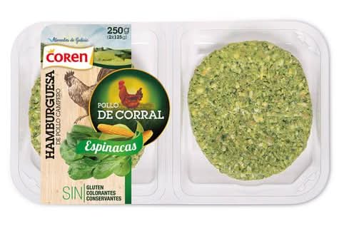 Hamburguesa de pollo campero con espinaca · Coren (2 x 125 g)