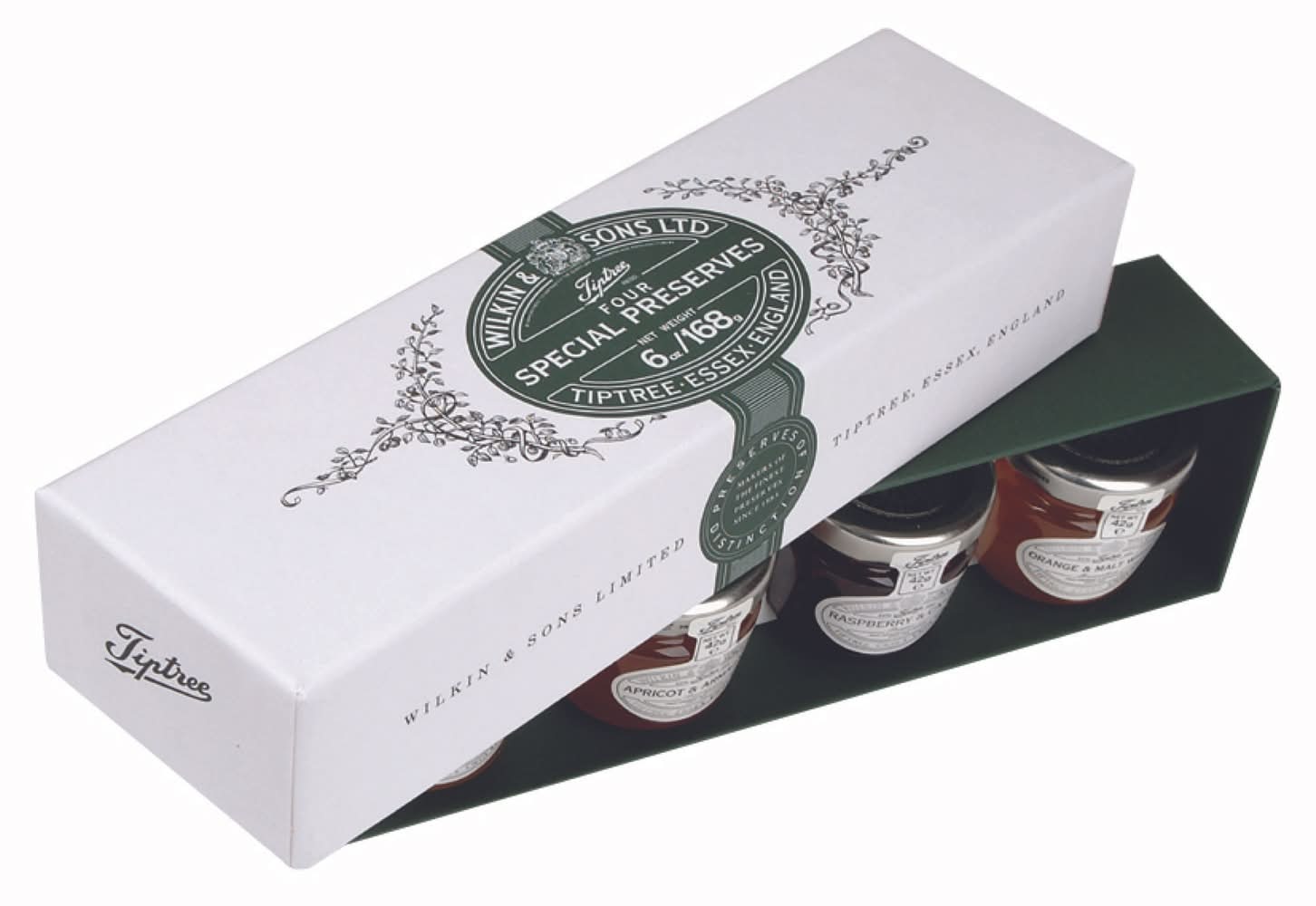 Estuche de conservas de frutas · Tiptree - Albaricoque-Armagnac-Fresa-Champagne-Naranja-Whisky-Malta-Frambuesa (4 un)