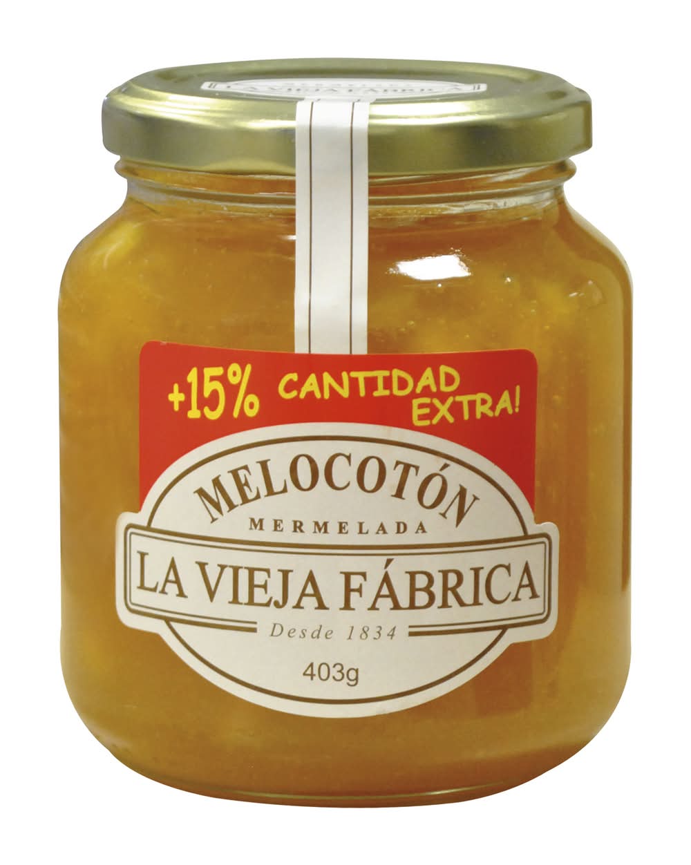 Mermelada de melocotón 15% extra gratis · La Vieja Fábrica (403 g)