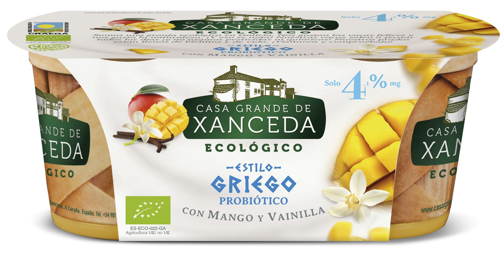Ecológico yogur con bífidus · Casa Grande de Xanceda - Vainilla-Mango (2 x 125 g)