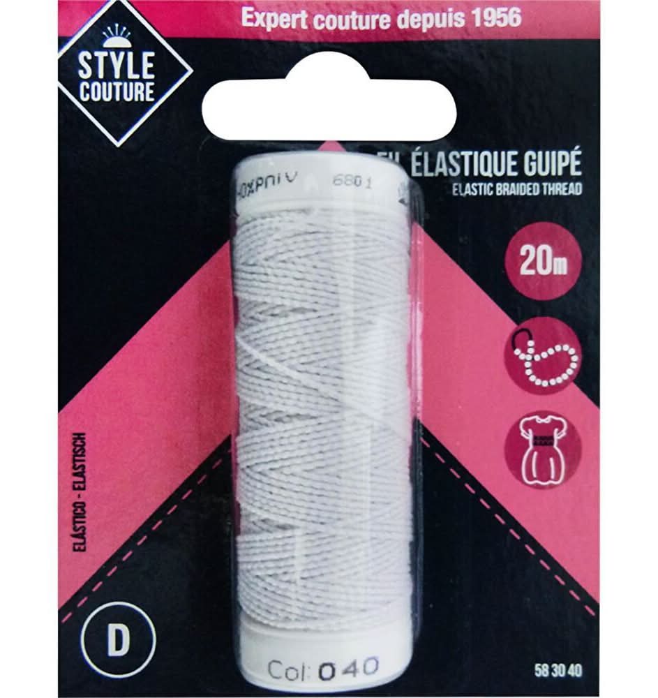 Style Couture - Bobine de fil élastique tressé, 20 m, blanc