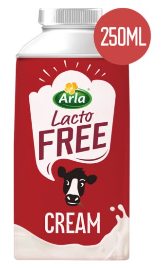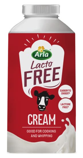 Easier to Digest‡ Delicious dairy that's easier to digest‡ ‡Easier to digest if you may be lactose intolerant or have a sensitive gut. Less than 0.03% lactose. *We use rigorous scientific testing to ensure that LactoFree cream contains no lactose, using accurate accredited tests, enabling us to detect lactose at a trace level of 0.03%. At this level our tests show that there is no lactose present in LactoFree. Lactose Free* Lactose Free* Stabilised Pasteurised Whipping Cream Arla Foods, Arla Foods, Leeds, LS10 1AB.