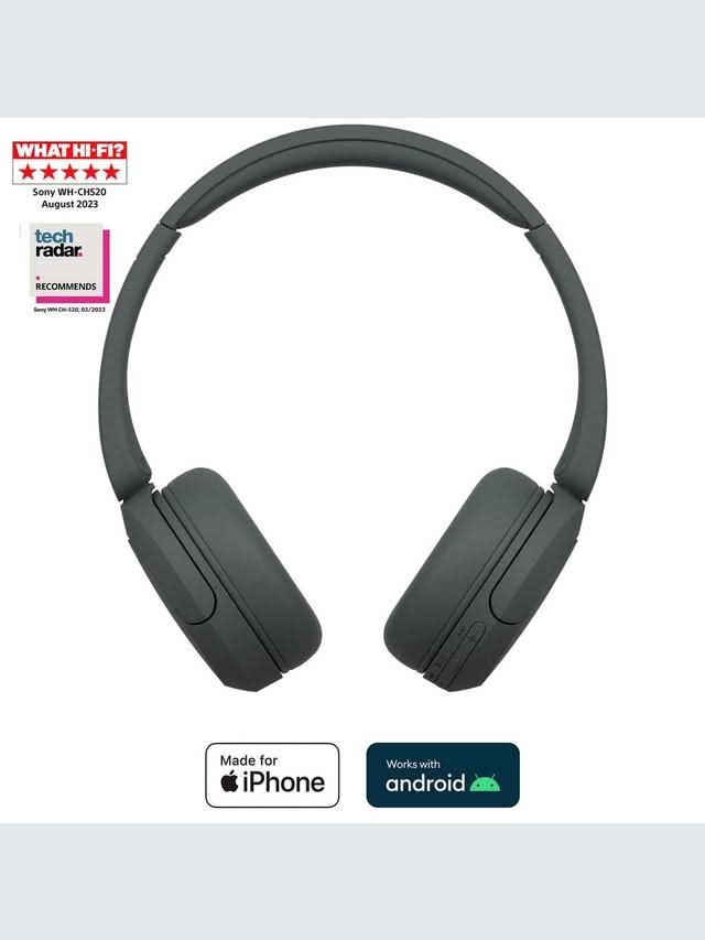 Sony Black, Wh-Ch520 Bluetooth Wireless On-Ear Headphones With Mic