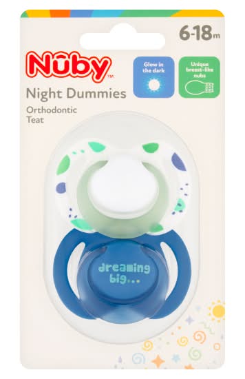 Nûby 6-18 Month, Orthodontic Teat Night Dummies (2 pack)