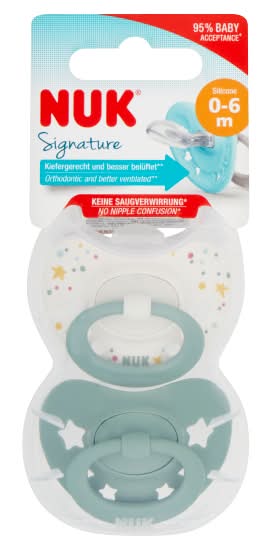 NUK 0-6 Months, Green, Signature Silicone Soothers (2 pack)