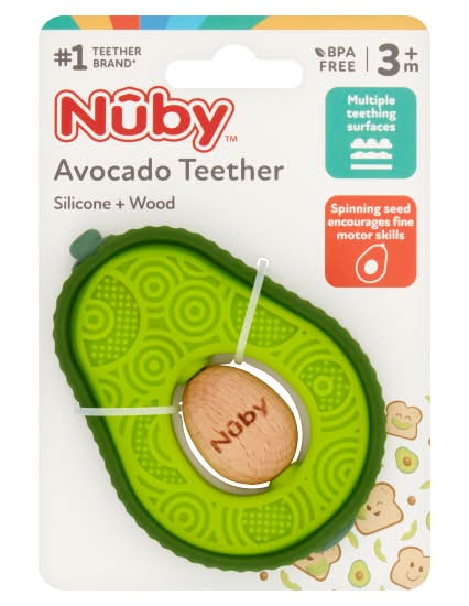 Nûby 3+M, Green, Silicon + Wood Avocado Teether