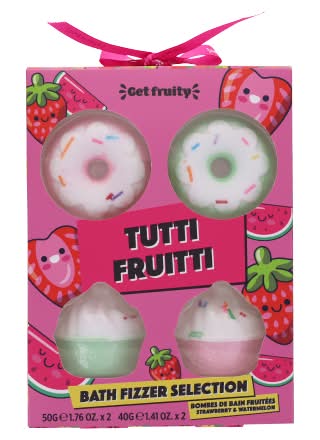 Get Fruity Strawberry & Watermelon, Tutti Fruity Cupcake Donut Bath Fizzers (4 pack)