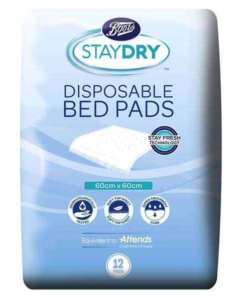 Boots 60x60cm12, Staydry Disposable Bed Pads (12 pack)