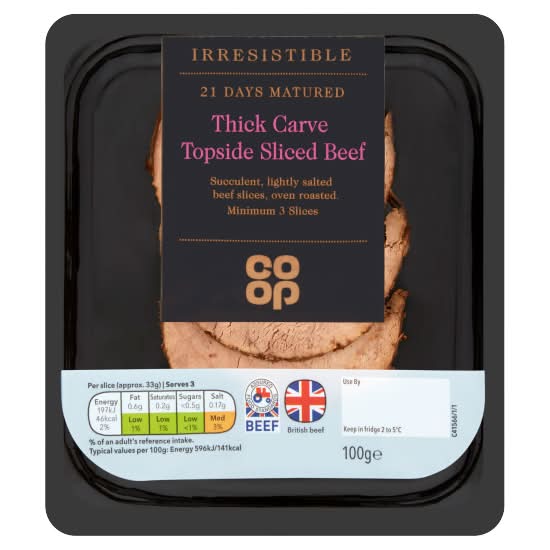 Co-op Irresistible 21 Days Matured Thick Carve Topside Sliced Beef (100g)