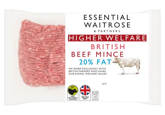 Essential Waitrose & Partners Higher Welfare 20% Fat British Beef Mince (500g)