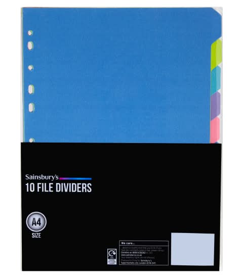 Sainsbury's A4, File Dividers (10 pack)