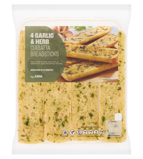 ASDA 4 Garlic & Herb Ciabatta Breadsticks (130g)