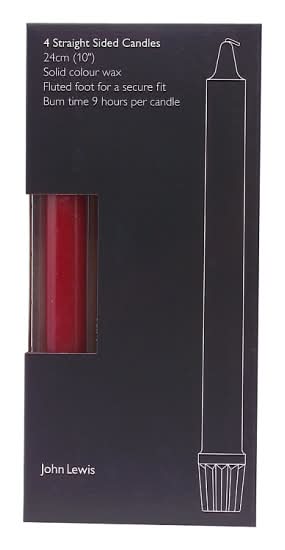 John Lewis 24 cm, Red, Straight Sided Candles (4 pack)