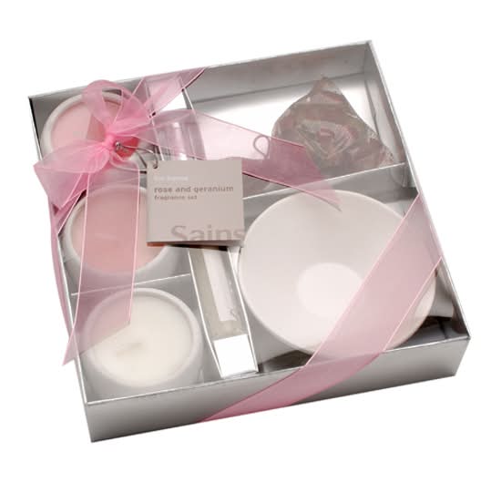 Sainsbury's Rose & Geranium, For Home Fragrance Set With Wax Filled Pots & Room Spray
