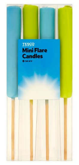 Tesco Blue - Green, Mini Flare Candles pack (4 pack)