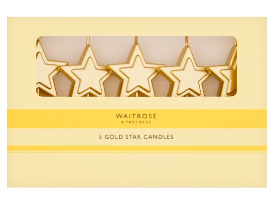 Waitrose & Partners Gold, Star Candles (5 pack)