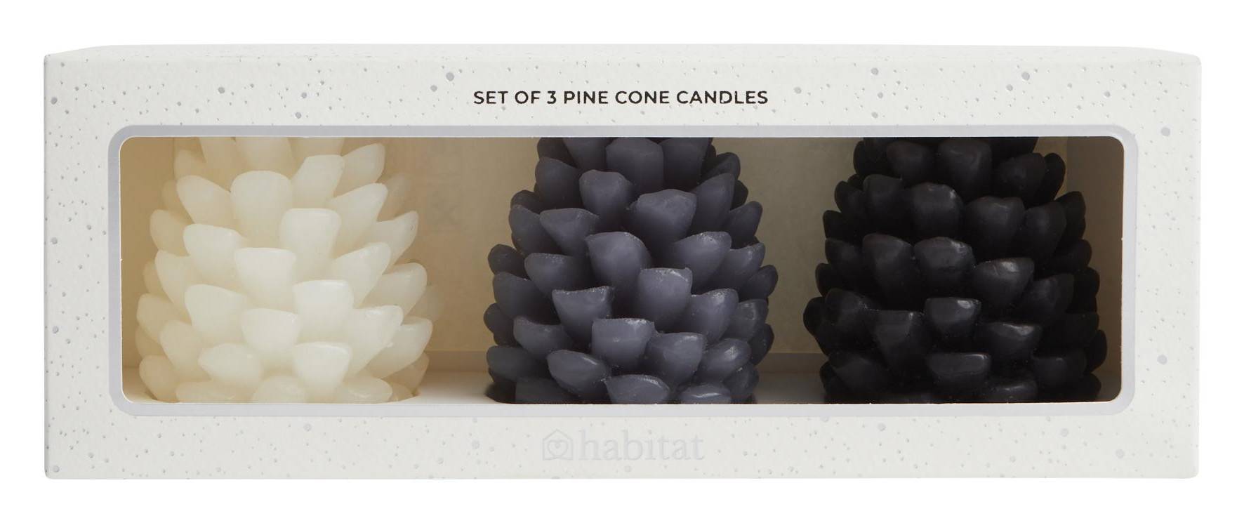 Habitat White-Grey-Black, Pine Cone Candles Set (3 pack)