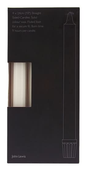 John Lewis 24 cm, White, Straight Sided Candles (4 pack)