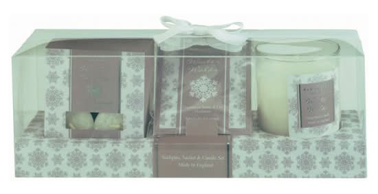 Wax Lyrical White, Christmas Tealights Sachet & Candle Set