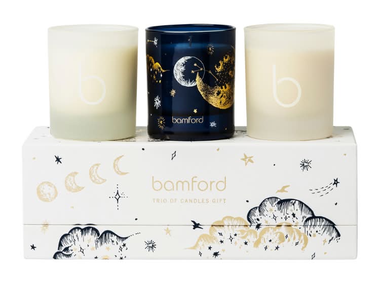 Bamford Chestnut & Cashmere-Candied Orange-Frankincense Sky, Trio Of Candles Gift Set (3 x 140g)