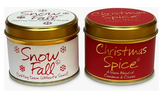 Lily-Flame Snow Fall-Christmas Spice, White-Red, Mini Tin Duo Candle Gift Set (2 pack)