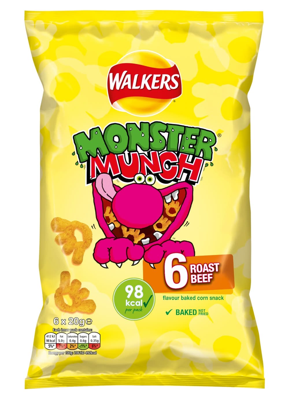 Walkers Roast Beef, Monster Munch Snacks (6 pack)