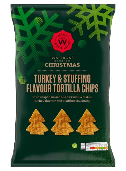 Waitrose & Partners Christmas Turkey & Stuffing Christmas Tree Shaped Tortilla Chips (200g)