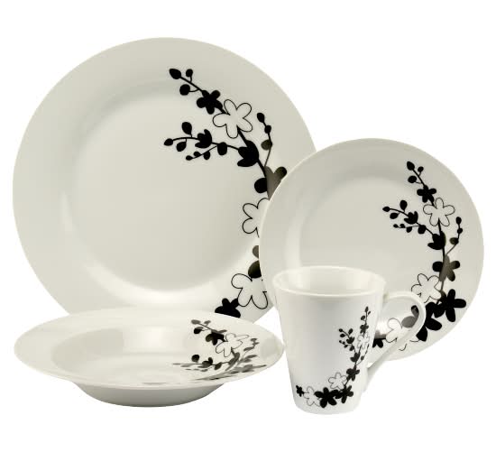 ASDA Black White, Orchid Dinner Set (16 pack)