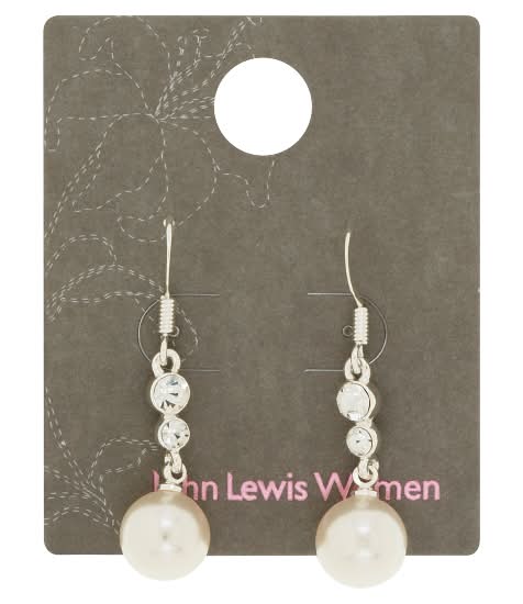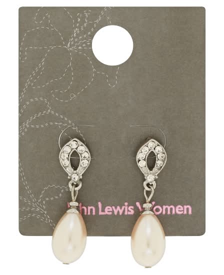 John Lewis Women Teardrop Pearl & Diamante Earrings