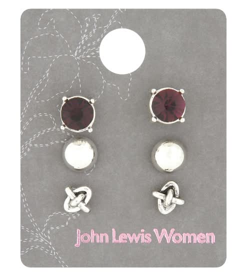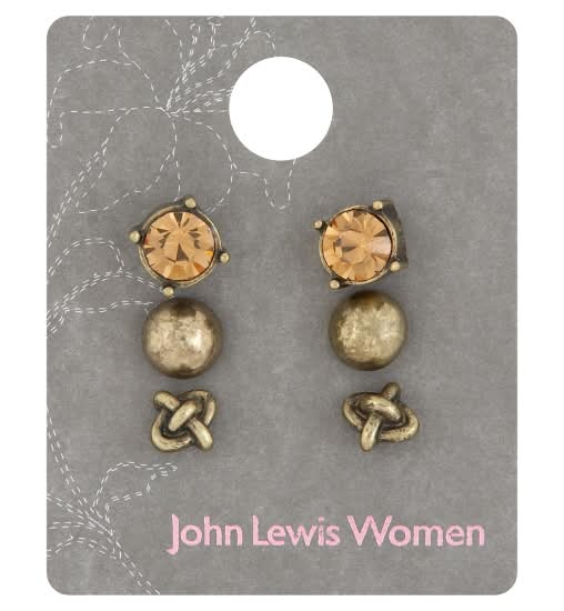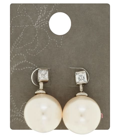 John Lewis Women Fat Pearl & Square Diamante Earrings