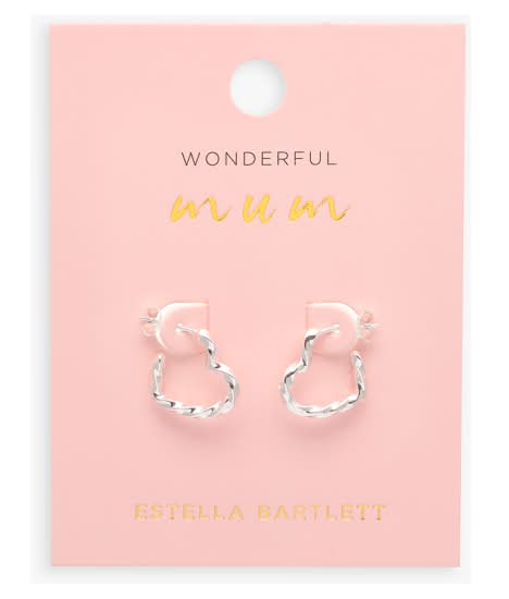 Estella Bartlett Silver, Wonderful Mum Twisted Rope Heart Hoop Earrings