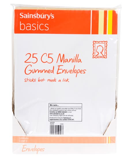 Sainsbury's C5, Basics Manilla Gummed Envelopes (25 pack)