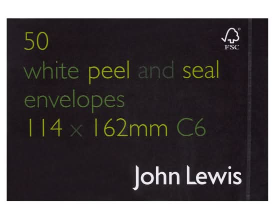 John Lewis C6, White, Peel & Seal Envelopes (50 pack)