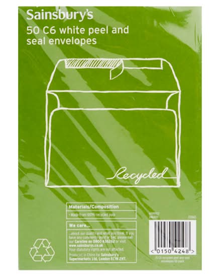 Sainsbury's C6, White, Peel & Seal Envelopes (50 pack)