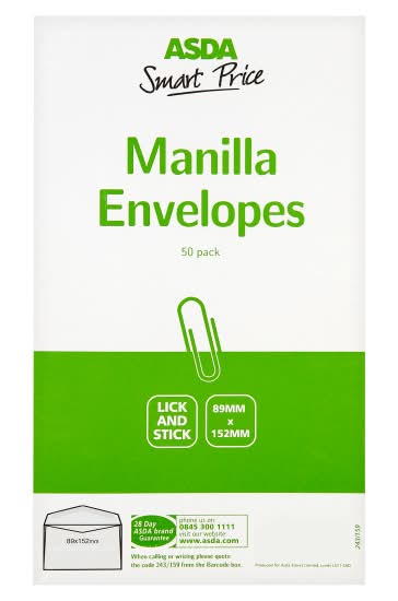 ASDA 89x152 mm, Smart Price Manilla Envelopes (50 pack)