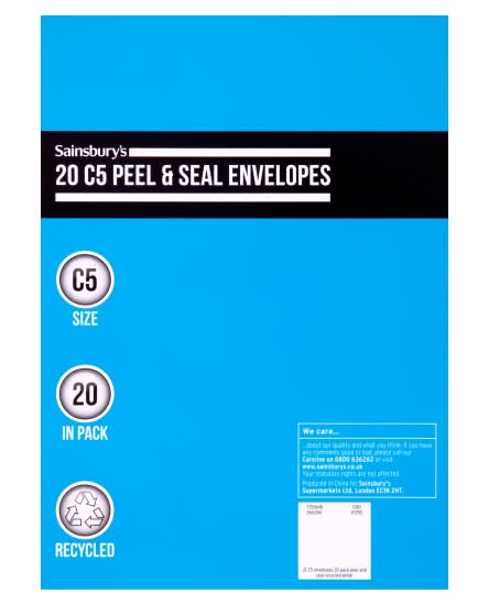 Sainsbury's C5, White, Peel & Seal Envelopes (20 pack)