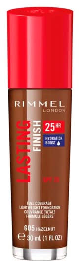 Rimmel London Hazelnut 605, Lasting Finish 25 Hour Full Coverage Lightweight Foundation Spf 20 (30ml)