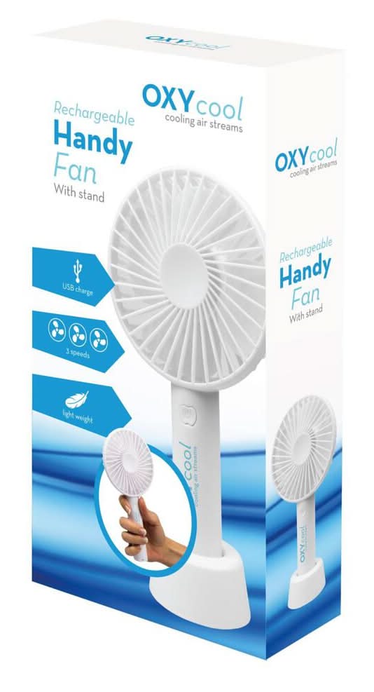 Oxy Cool White, Rechargeable Handy Fan With Stand