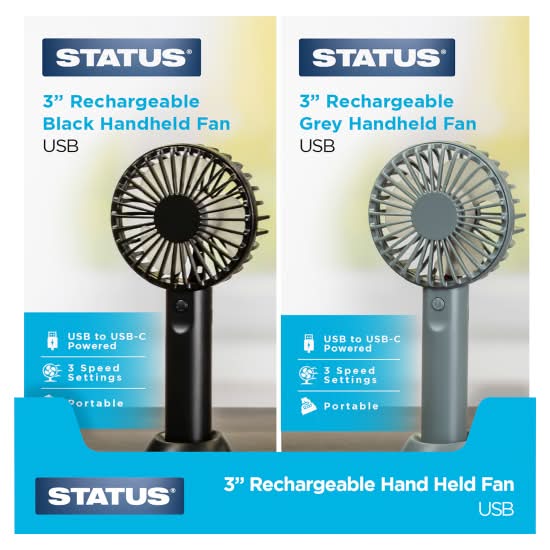 Status 3 in, Grey, Rechargeable Handheld Fan