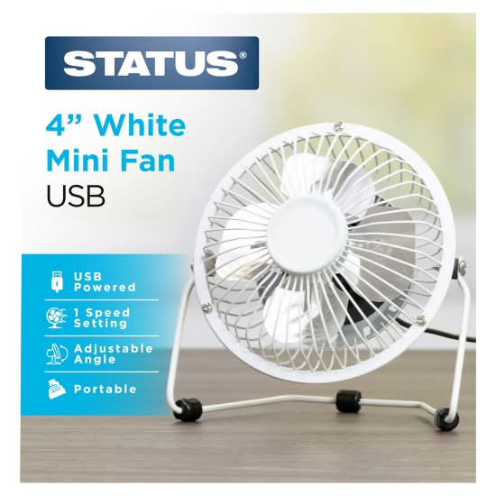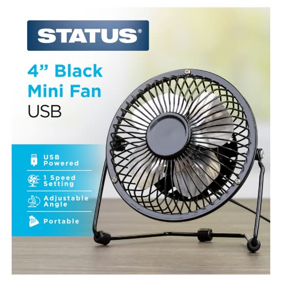 Status 4 in, Black, Usb Rechargeable Mini Fan
