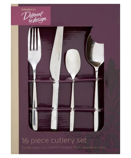 Sainsbury's Different By Design Stainless Steel Cutlery Set (16 pack)