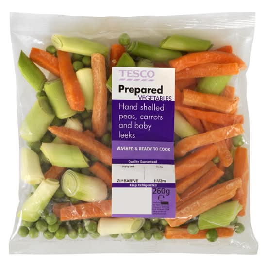 Tesco Hand Shelled Peas Carrots & Baby Leeks Prepared Vegetables (260g)