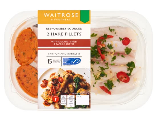 Waitrose & Partners Garlic Chilli & Paprika Butter, 2 Hake Fillets With a Garlic, Chilli & Paprika Butter (256g)