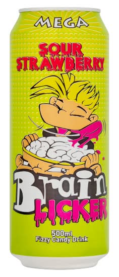 Brain Licker Sour Strawberry, Mega Fizzy Candy Drink (500ml)