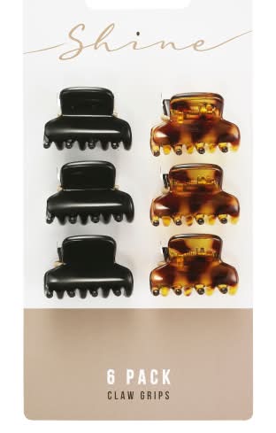 Shine Black-Tortoiseshell, Hair Claw Grips (6 pack)