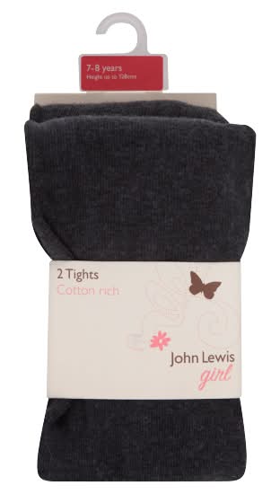 John Lewis 7-8 Years, Charcoal, Girl Cotton Rich Tights (2 pack)