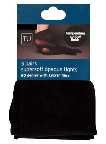 TU XL, Black, Supersoft Opaque Tights 60 Denier Pairs (3 pack)